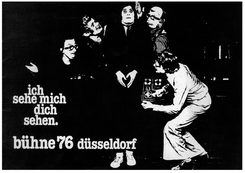 In den Jahren 1971 bis 1973 machte sich die „Bühne“ daran, neue Wege für ihre Arbeit zu finden, um ihrem Anspruch, ein experimentelles Theater zu sein, weiterhin gerecht werden zu können. In der Rückschau wurde schnell klar, dass die bisherigen Produktionen – insbesonder „Time out of Mind“, „The Electric Environment“ und „Kontakt – Contact“ – eine große Stil-Ähnlichkeit aufwiesen, was auf die weitgehende Identität der darin zum Ausdruck gebrachten Aussagen zusammenhing. In allen Fällen ging es um Emotionen, um ihre Darstellung und Erweckung. Die Stücke waren in Form einer Gruppentherapie angelegt, in die Akteure und Zuschauer gleichermaßen einbezogen wurden. Dieser Weg nach innen erschien der „Bühne“ für die siebziger Jahre nicht mehr zeitgemäß zu sein. Nach längerer Suche stellte sich für ihre weitere Arbeit der Begriff „Kommunikation“ ein. Ihre Chancen und Risiken zu untersuchen und zur Darstellung zu bringen, war die Aufgabe und Herausforderung, der sich die Theatergruppe bei ihren nächsten Produktionen stellen wollte. Dabei orientierte sie sich an Autoren wie Paul Watzlawick, Marshall McLuhan und vor allem an den Werken „Phänomenologie der Erfahrung“ und „Knoten“ des schottischen Psychiaters Ronald D. Laing. Insbesondere die These des letzteren, dass wir unsere Erfahrungen grundsätzlich nicht übermitteln können, dass wir immer nur eine Ahnung von dem haben können, was ein anderer erfahren hat, durch seine Verhaltensweisen, bewegte die Gruppe zu einer Auseinandersetzung. Aus dieser Beschäftigung heraus entstand das erste Stück der „Bühne“ im neuen Stil mit dem Titel „Ich sehe mich dich sehen“. |