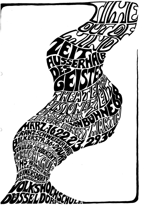 Plakate zu den Aufführungen 1968, im typischen psychedelischen Stil der Zeit. Grafik: Hartwig Niejahr |