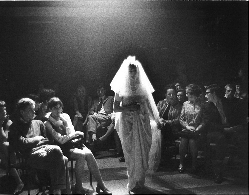 Mit dem 1966 aufgeführten Stück „Ballade für einen Parasiten“ erzielte die „Bühne“ einen ersten großen Erfolg. Über den Entstehungsprozess dieses von der Gruppe selbst erfundenen Schauspiels berichtete die „Neue Ruhr Zeitung“ vom 19. März 1966 in einem Vorbericht über die Probenarbeit kurz vor der Premiere: "Die „Bühne“ will bewusst modernes Theater erarbeiten. Sie diskutiert leidenschaftlich und ausgiebig ihre Themen, beschließt nach sorgfältigem Abwägen von Kritik und Zuspruch die Auswahl des Themas und bildet ein Team, das aus dem Thema ein Bühnenstück macht. Und erneut wird in kritischer Gemeinschaft gefeilt und geändert. So lebt die „Bühne“ ständig von den Anregungen aus ihren Reihen. (...)Die Bühne macht Theater von A bis Z, so, wie sie es versteht und will, unkonventionell, von den momentanen Eingebungen gesteuert, neuartig." Den Anstoß zu der „Ballade für einen Parasiten“ gab ein in der „Zeit“ abgedrucktes Protokoll einer Gerichtsverhandlung gegen den russischen Schriftsteller Jossif Brodski, der angeklagt und zu Zwangsarbeit verurteilt worden war, weil er angeblich keiner für den Staat nützlichen Arbeit nachgehe. „Nun galt es, dass Gerüst dieser Prozessakte mit der Kritik an der Bewertung von Künstlern durch nichtkünstlerische Menschen, mit der Kritik an der Gesellschaft schlechthin szenisch zu verbinden. Die Mitglieder der Gruppe brachten es fertig, den Bogen vom kultgläubigen Höhlenmenschen bis zum Retortenbaby von übermorgen zu spannen“ (Düsseldorfer Nachrichten v. 9. Mai 1966). "Der Ablauf der von einer fanatisierten Richterin ostzonalen Genres geleiteten Gerichtsverhandlung wurde collagenhaft von surrealen oder grotesken Szenen durchwirkt. Schauspiel und kabarettistische Songs gingen nahtlos ineinander über. (...)Begeisterten Szenenbeifall fanden besonders die am laufenden Band laut Antrag produzierten Roboter-Menschenpuppen, die glühwürmchenhaft aufleuchtenden politischen und sonstigen diversen Parolen zum Heile der Menschheit oder die herrlich karikierte Spießbürgerfamilie mit „verführtem“ Dichtersohn. Sympathisch zurückhaltend wirkte die Zentralfigur des Brodski" (Rheinische Post v. 17. Mai 1966). |