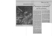 | 1967 griff die „Bühne“ wiederum auf ein vorgegebenes Stück zurück: die „Insekten-Komödie“ der tschechischen Brüder Josef und Karel Capek. Sie handelt vom tändelden Liebesleben der Schmetterlinge, von der nichtigen Besitz- und Erfolgsgier der Raubkäfer und von dem technisch perfekten totalitären Ameisenstaat „Ameisika“. Die einzelnen Szenen werden kaleidoskopisch aneinandergereiht, lose zusammengefügt durch die blödelnden Randbemerkungen eines Landstreichers. In der Kritik zu der Aufführung hielten sich Lob und Tadel die Waage. „Regisseur Ernest Martin nutzte das große Insekten-Aufgebot der Komödie der Brüder Capek zu liebevollen pantomischen Rollenstudien für seine Laiengruppe. Manche Darsteller konnten mehrere Rollen spielen. Doch erlag die Inszenierung zu oft der Gefahr der übertriebenen Karikierung. Kostüme mit Schockfarben und Gaze wie märchennahe Bühnengestaltung zeigten viel Kleinarbeit“ (Rheinische Post v. 25. April 1967). Mit gleichem Tenor auch die Kritik in den „Düsseldorfer Nachrichten“ v. 28. April 1967: „Ernest Martin stolperte denn auch über den nichtigen Text und landete in Karikaturen. Er hielt sich und seine Spieler jedoch eine Zeitlang recht wacker. Es flatterte, huschte, kicherte und lächelte. Sobald jedoch zur Pantomime die Sprache hinzutrat, versagten die jugendlichen Spieler. Sehr nette Kostüme, wenige Details zeigten die jeweilige Insektenart an; verspielt-heitere, ganz einfache Bühnenbilder.“ |